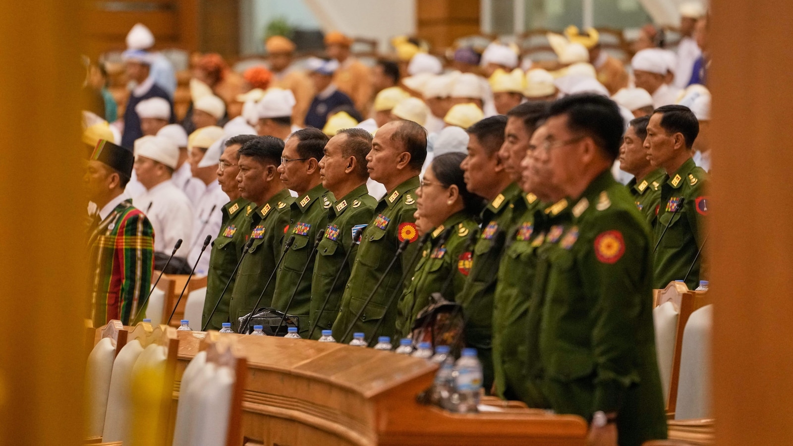 ووفقا للقوائم الرسمية، فإن 24 من هؤلاء هم جنرالات وضباط عسكريون حاليون أو سابقون أو مشرعون مدعومون من الجيش. حزب اتحاد التضامن والتنمية. وكان 18 من الوزراء أعضاء في الحكومة العسكرية السابقة، في حين كان أربعة من المسؤولين العسكريين والحكوميين تحت نفس الإدارة.