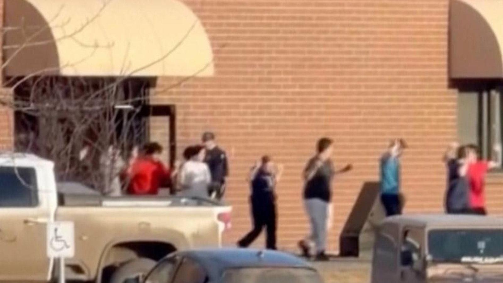 وأظهر مقطع فيديو الطلاب وهم يخرجون من المدرسة وأيديهم مرفوعة بينما حاصرت سيارات الشرطة المبنى وحلقت طائرة هليكوبتر في سماء المنطقة.